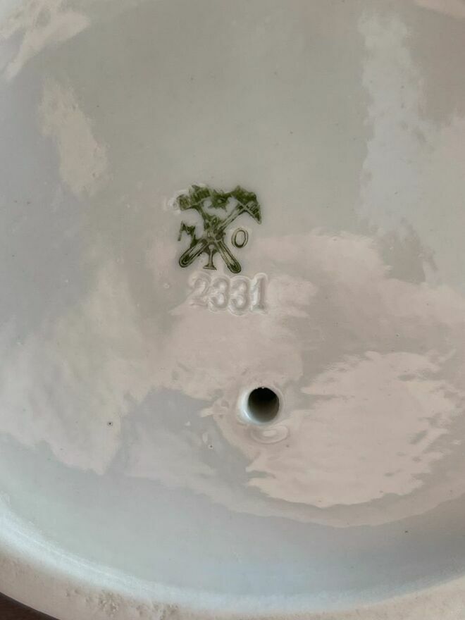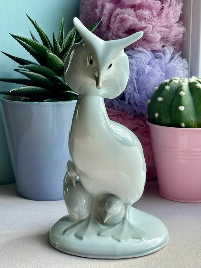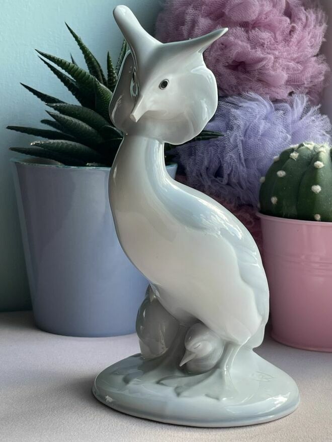 Porcelanowa figurka - Perkoz dwuczuby z dwoma młodymi, antyk, sygnatura stosowana w latach 1890-1945Model Sigismunda Wernekincka